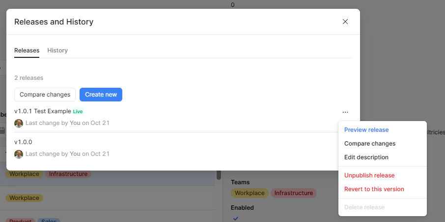 Retool offers plenty of useful tools and integrations for safely managing Enterprise deployments, versions, and releases. To ensure greater structure and reliability of your releases, we recommend - if you are on the Retool Enterprise plan - using Git to implement source control, as much as you would in traditional development environments.