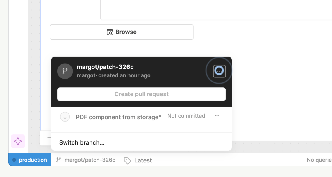 - Better collaboration between devs: pull requests are supported in Retool, which allows for code review and quality checks, and branching supports features and bug fixes without disrupting others’ work, which can be automatically merged.